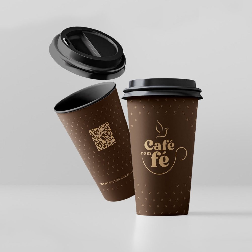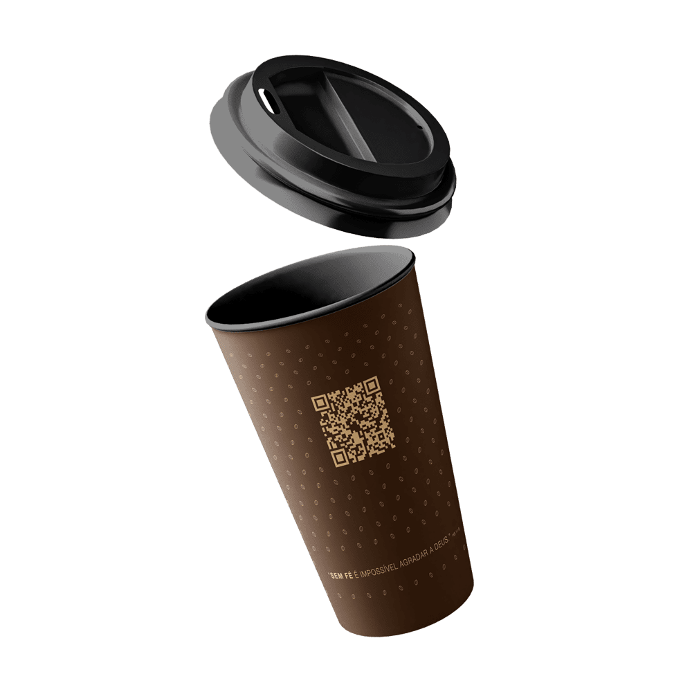 Copo com Tampa Café com Fé cor Marrom